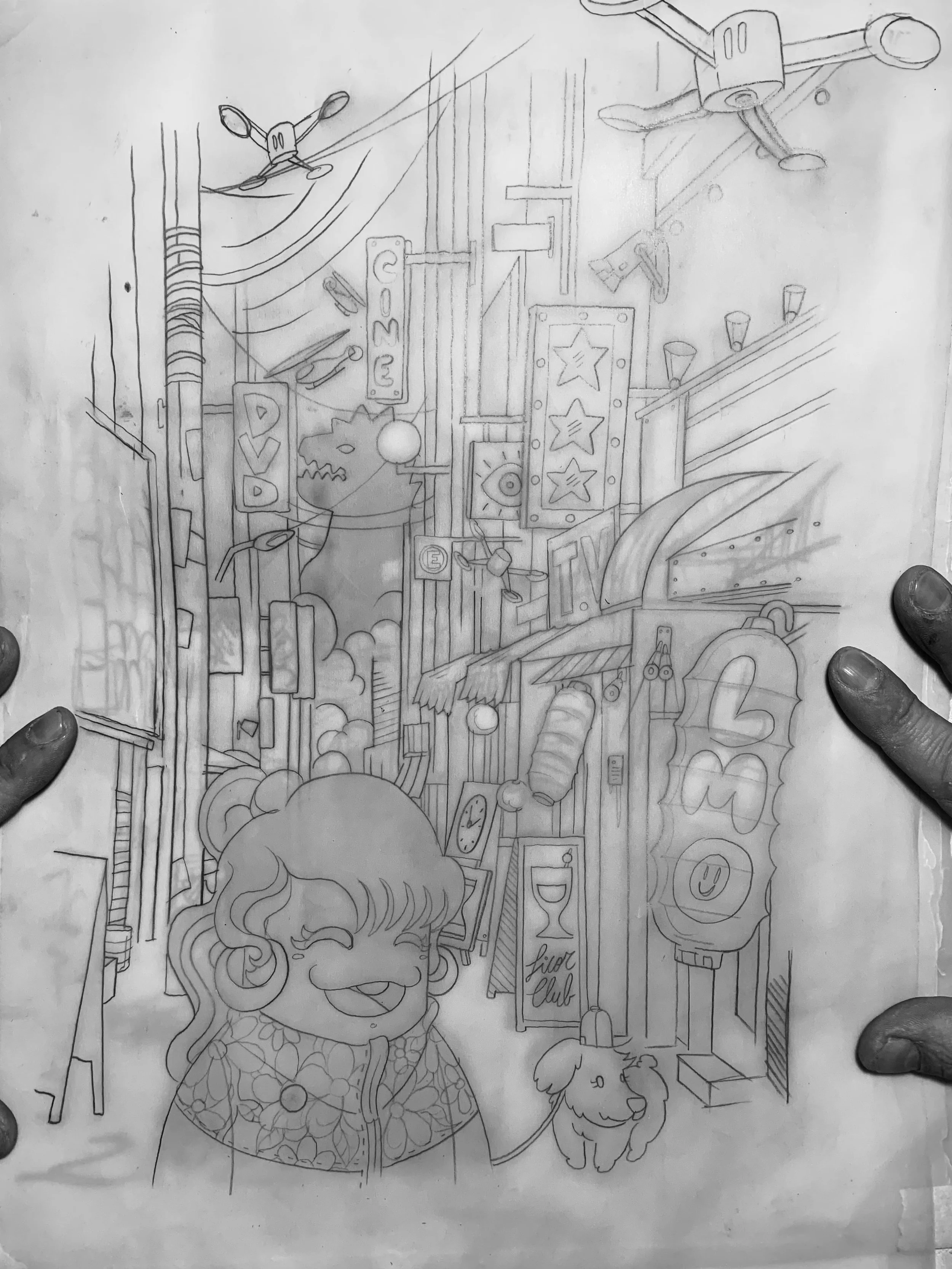 En mi nuevo proyecto, partí trabajando en la creación de collage digitales sobre espacios urbanos. Este proceso requiere de dedicación y meticulosidad, comenzando con la elaboración de un collage como base para luego incorporar mis personajes. Actualmente, me encuentro en la etapa de bocetos, desarrollando el tercer diseño antes de llevarlo al ámbito digital.